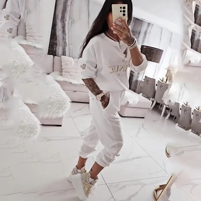 BOLD LETTERS – The bold letter prints add a touch of modernity and individuality to the set. These eye-catching details enhance the outfit and allow you to express your unique fashion sense without overwhelming the overall look.